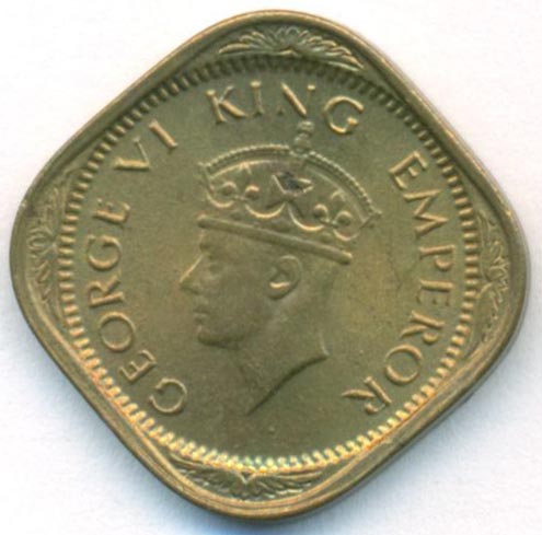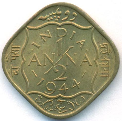Британская Индия, 1/2 анны 1944 год (UNC)