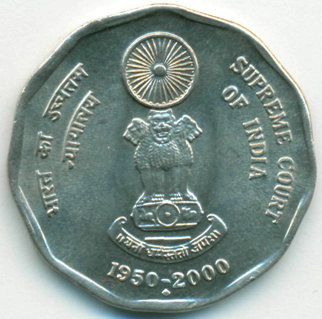 Памятная монета, приуроченная к 50-й годовщине образования Верховного суда Индии.