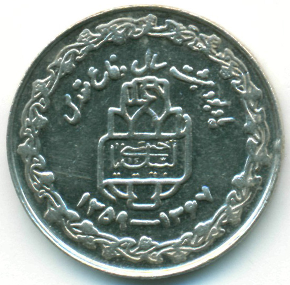 Юбилейная монета, посвященная 1-й годовщине окончания "Священной обороны" - Ирано-иракского военного конфликта, продолжавшегося с 1980 по 1988 годы.