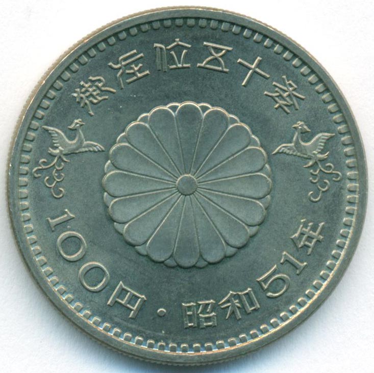 Памятная монета, приуроченная к 50-й годовщине восшествия на престол 124-го Императора Японии Хирохито, 26 декабря 1926 год.
