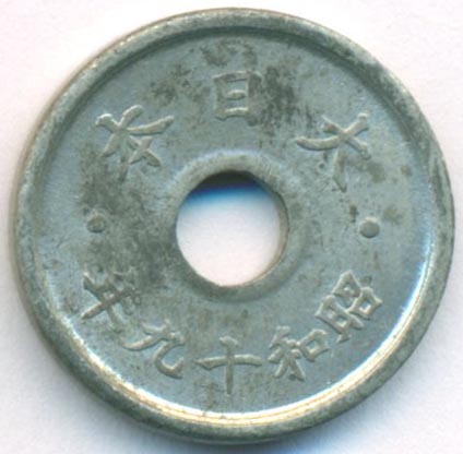 Япония, 5 сенов 1944 год (UNC)