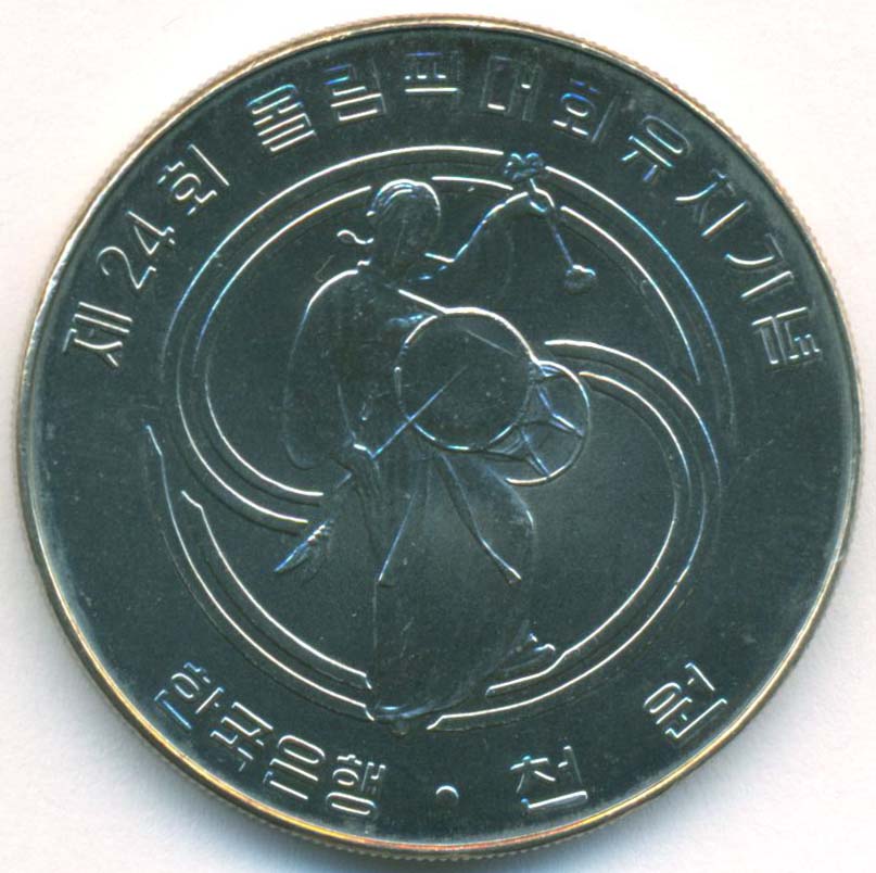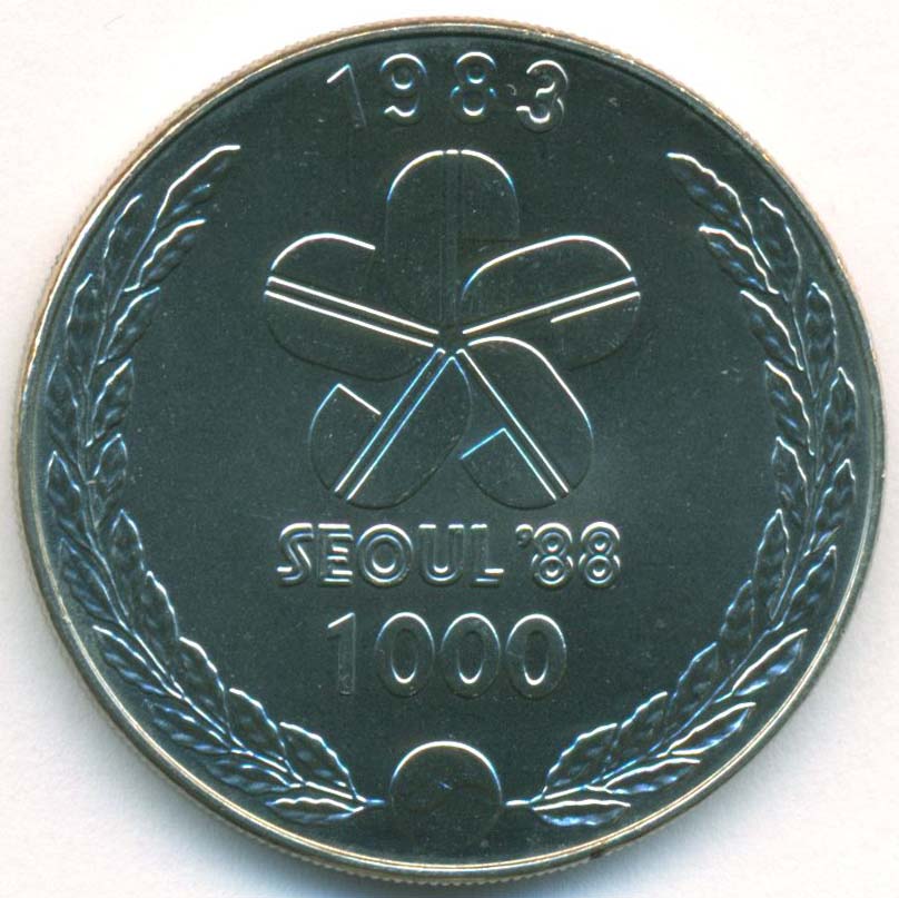 Памятная монета, посвященная проведению XXIV летних Олимпийских игр в Сеуле (Южная Корея), 1988 год.