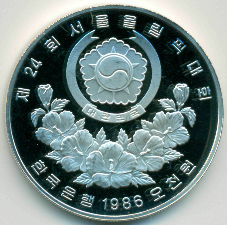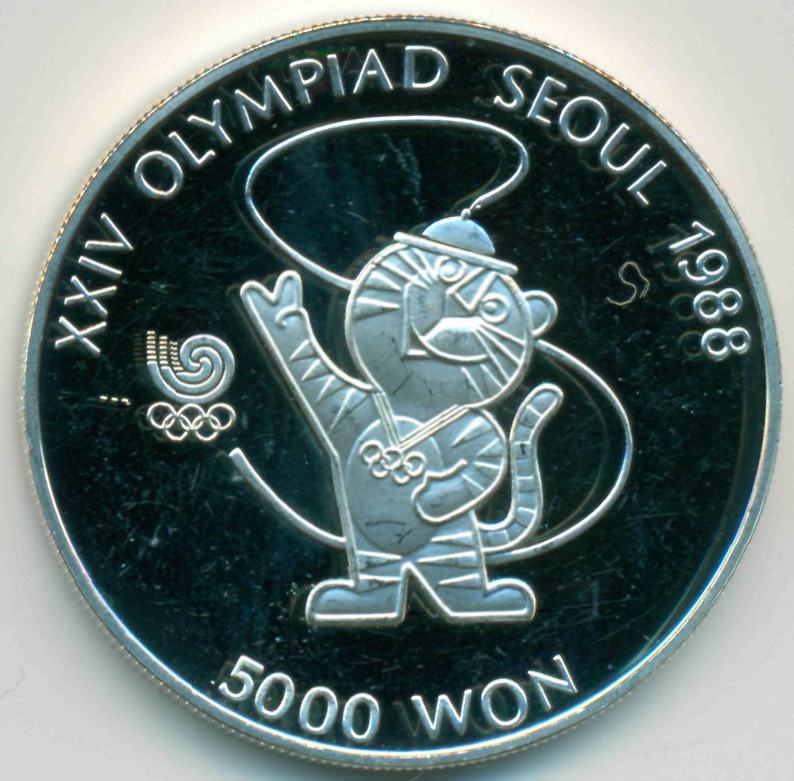 Памятная монета, приуроченная к проведению XXIV летних Олимпийских Игр в Сеуле (Южная Корея), 1988 год. Талисман Олимпийских Игр.