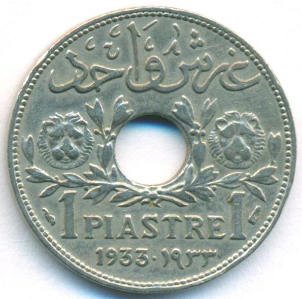 Ливан, Французский протекторат, 1 пиастр 1933 год