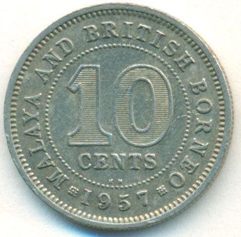 Малайя и Британское Борнео, 10 центов 1957 год KN