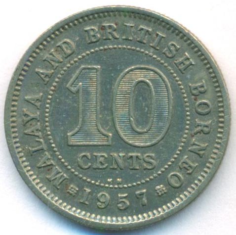Малайя и Британское Борнео, 10 центов 1957 год KN