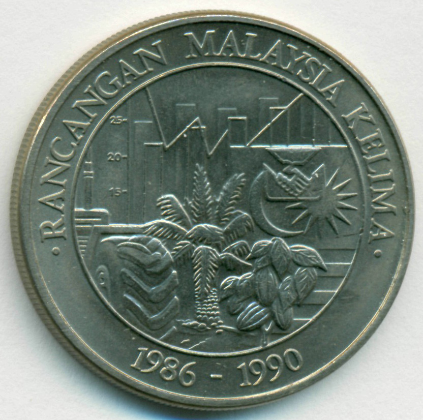 Памятная монета, приуроченная к принятию 5-го пятилетнего плана экономического развития Малайзии.