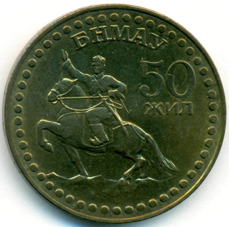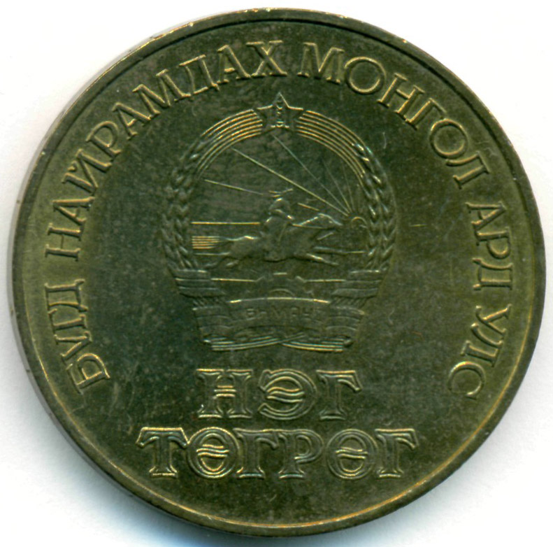 Юбилейная монета, посвященная 50-й годовщине свершения Монгольской Народной революции.