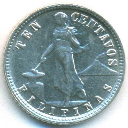 Филиппины, Зависимая территория США, 10 сентаво 1938 год (UNC)