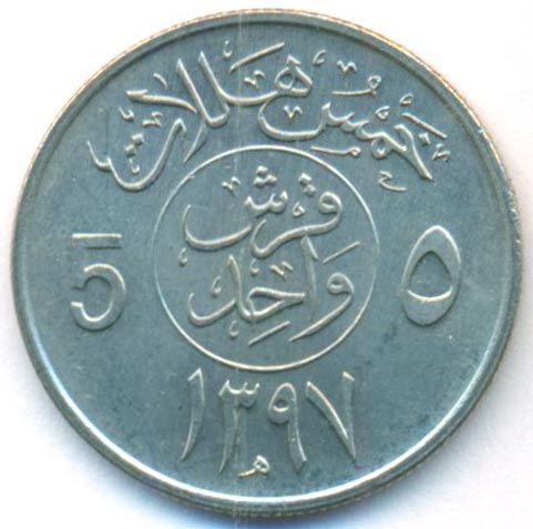 Саудовская Аравия, 5 халалов 1977 год (UNC)