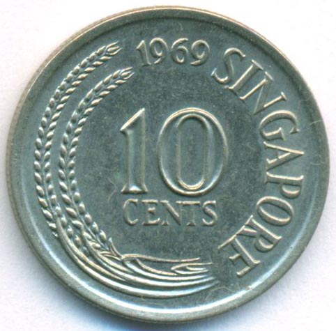 Сингапур, 10 центов 1969 год (AU)