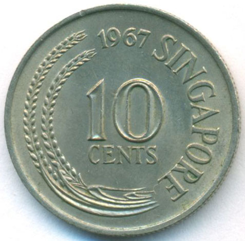 Сингапур, 10 центов 1967 год (UNC)