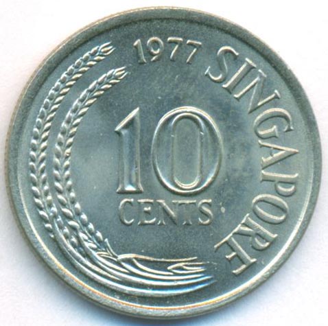 Сингапур, 10 центов 1977 год (UNC)