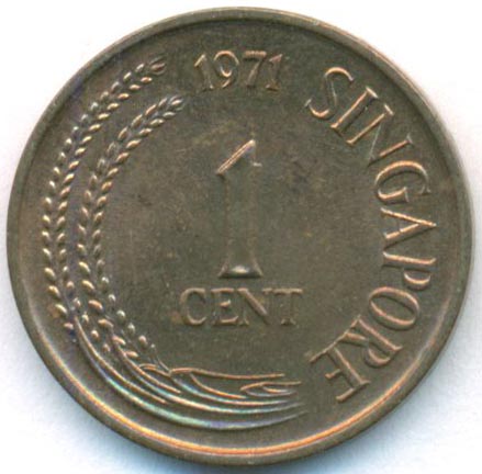 Сингапур, 1 цент 1971 год (AU)