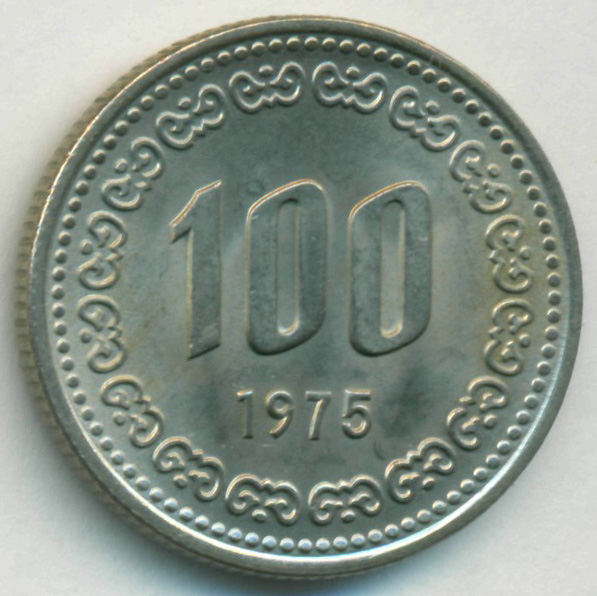 Южная Корея, 100 вон 1975 год (AU)