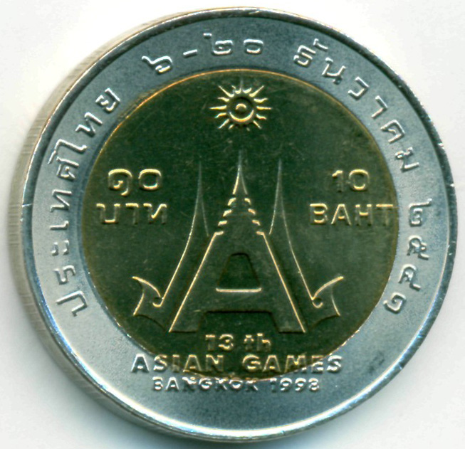 Памятная монета, приуроченная к проведению XIII Азиатских Игр а Бангкоке, 1998 год.