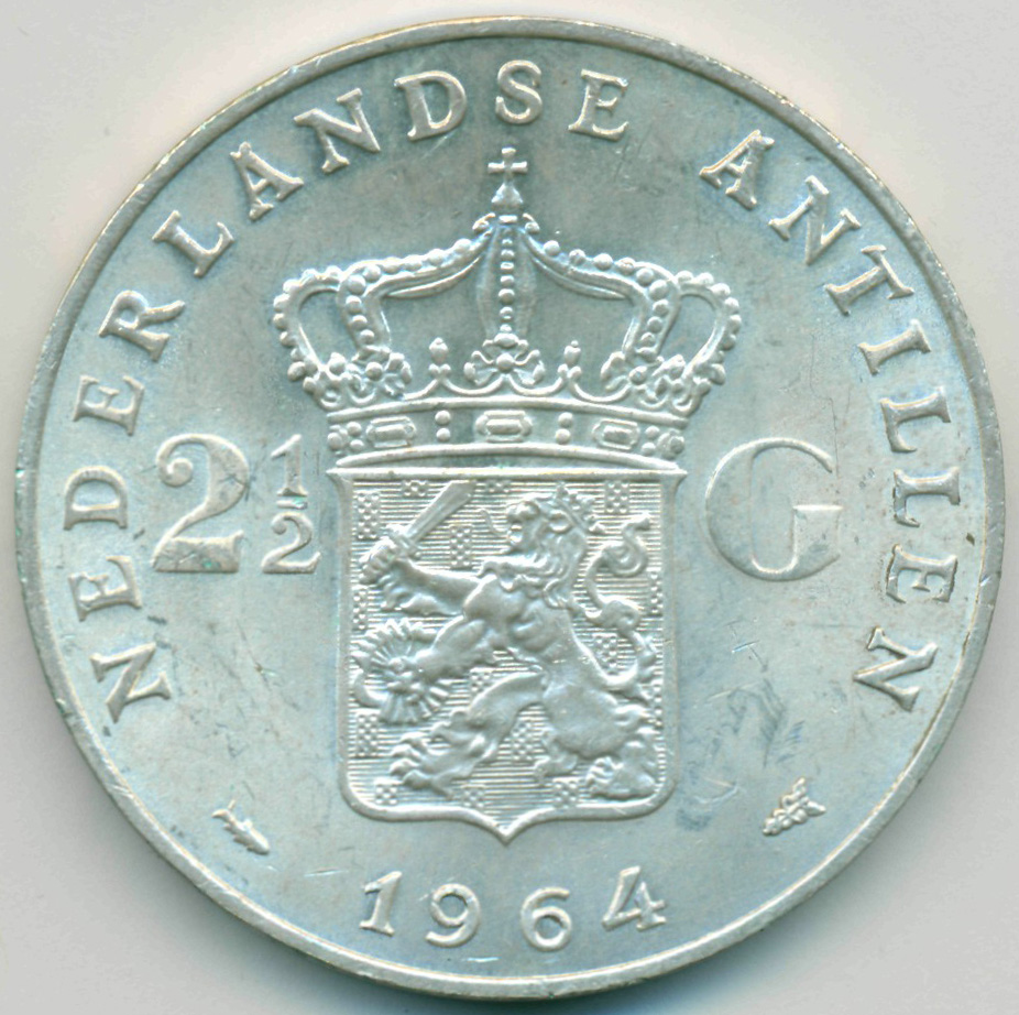 Нидерландские Антилы, 2-1/2 гульдена 1964 год (AU)