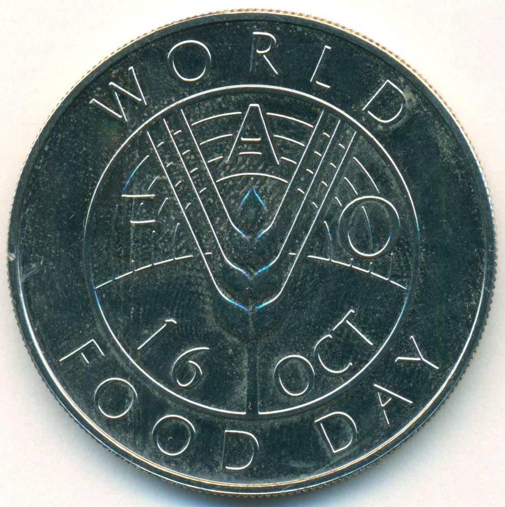 Памятная монета из серии F.A.O., приуроченная к празднованию Всемирного дня продовольствия - 16 октября.