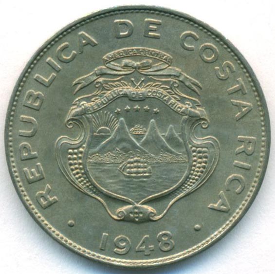 Коста-Рика, 25 сентимо 1948 год (UNC)