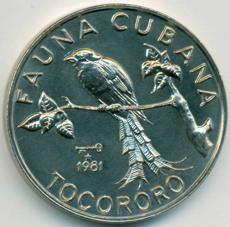 Коллекционная монета, из серии "Фауна Кубы". Токороро (кубинский трогон) - национальная птица Кубы.