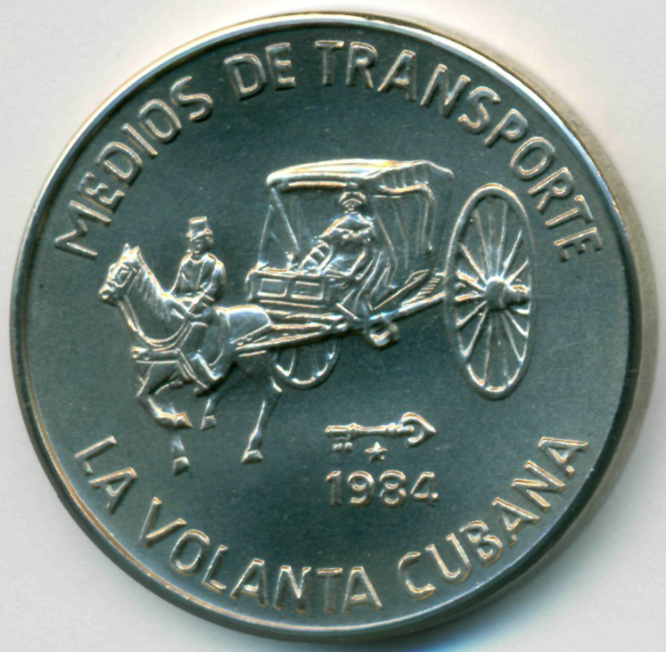 Памятная монета, из серии "Транспортные средства Кубы". Кубинская конная повозка.