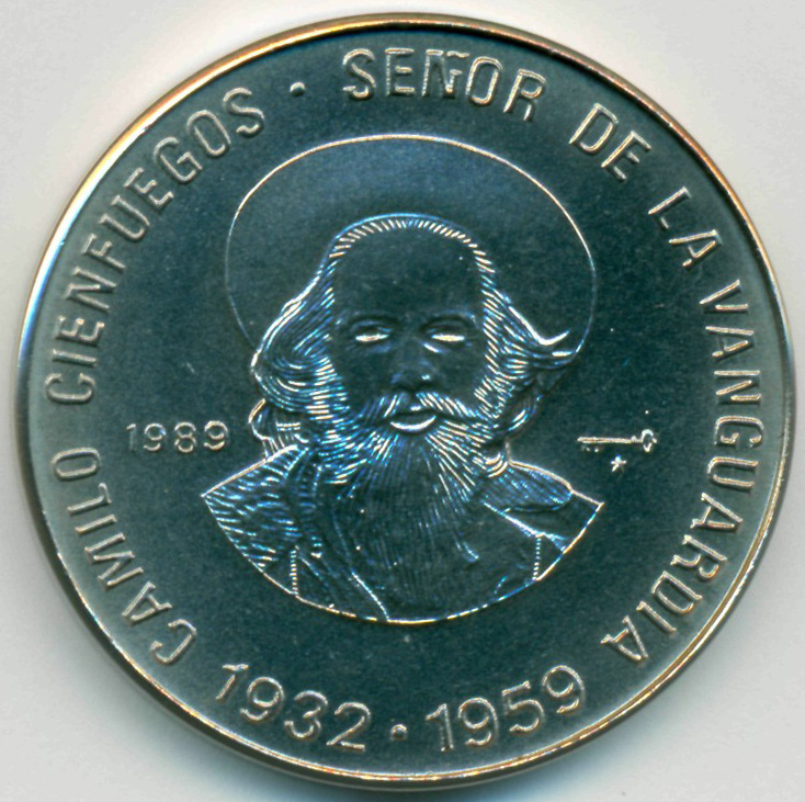 Памятная монета, посвященная 30-й годовщине со дня гибели Камило Сьенфуэгоса (1932-1959) - кубинского революционера, одного из ключивых фигурантов Кубинской революции.