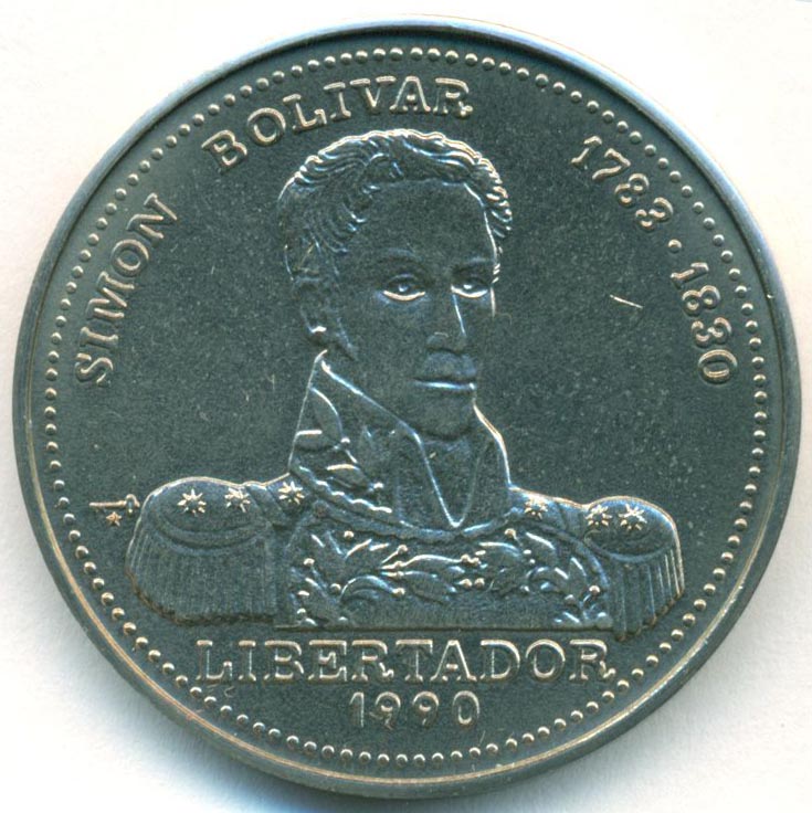 Памятная монета, приуроченная к 160-й годовщине со дня смерти Симона Боливара (1783-1830) - одного из наиболее влиятельных руководителей войны за независимость испанских колоний в Америке.