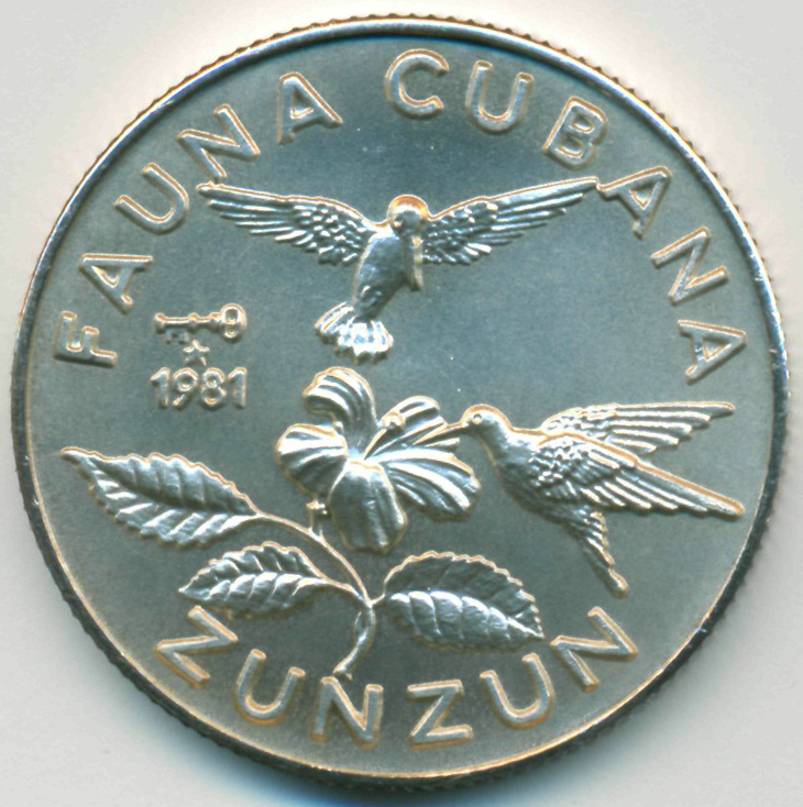 Коллекционная монета, из серии "Фауна Кубы". Колибри-Пчёлка.