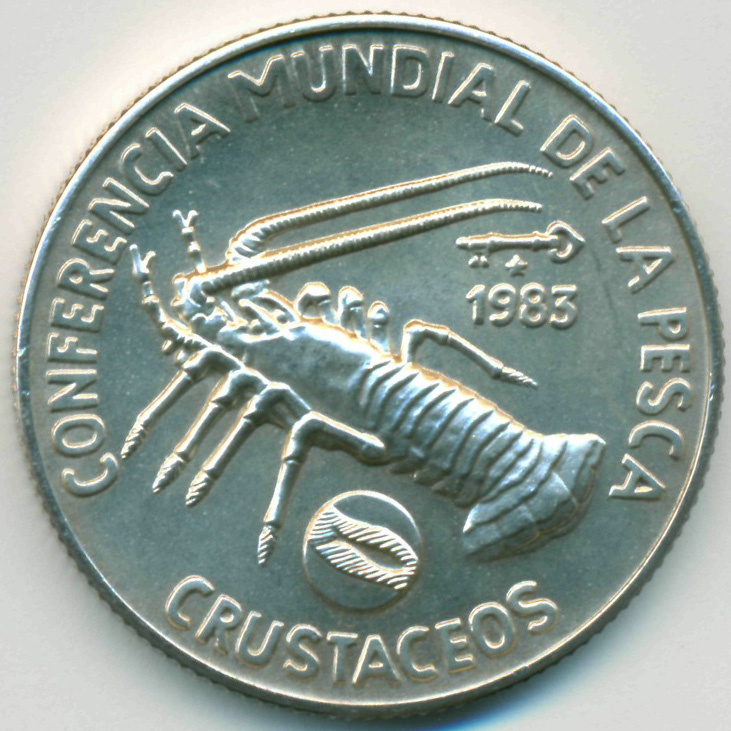 Памятная монета, приуроченная к проведению Международной конференции по регулированию и развитию рыболовства, Рим (Италия) 1984 год.