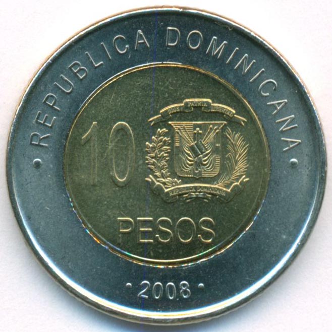Доминиканская республика, 10 песо 2008 год (UNC)