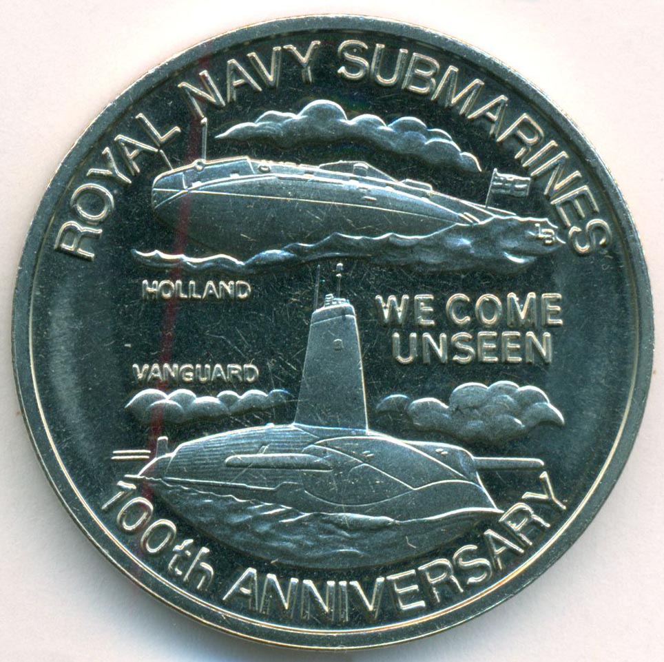 Памятная монета, посвященная 100-летию подводного флота Великобритании.