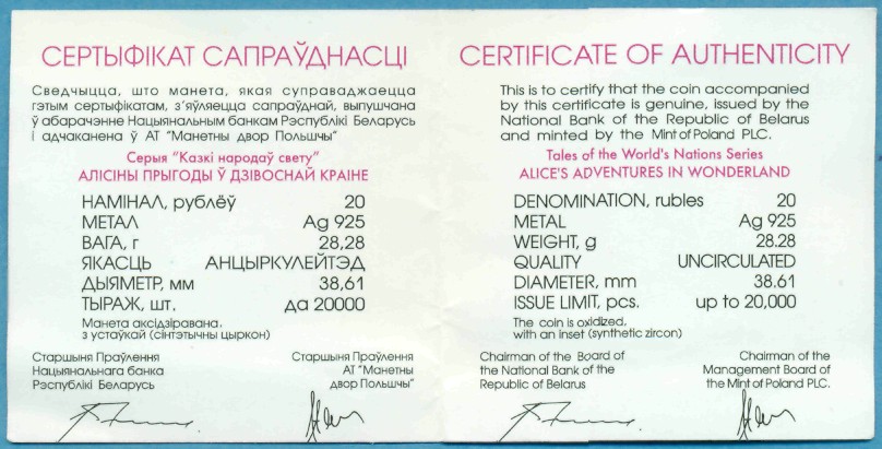 Коллекционная монета, из серии "Сказки народов Мира". Алиса в стране чудес - сказка английского писателя Льюиса Кэрролла.
