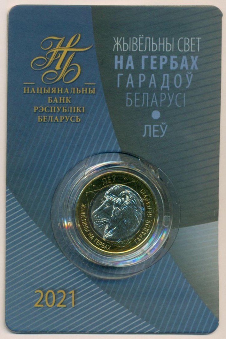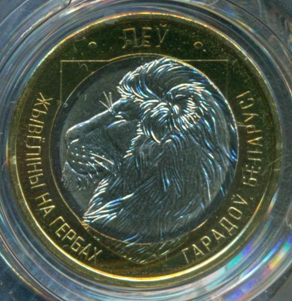 Монета из серии "Животные на гербах городов Беларуси" - лев.