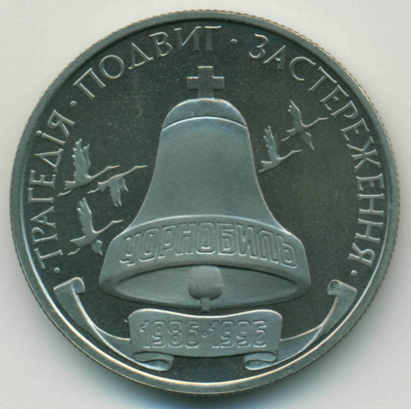 Памятная монета, посвященная 10-й годовщине аварии на Чернобыльской АЭС.
