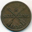 Швеция, 1/2 скиллинга 1802 год