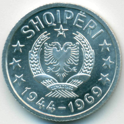 Памятная монета, приуроченная к 25-й годовщине освобождения Албании от фашизма.