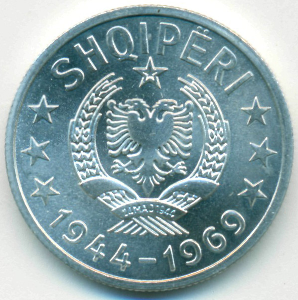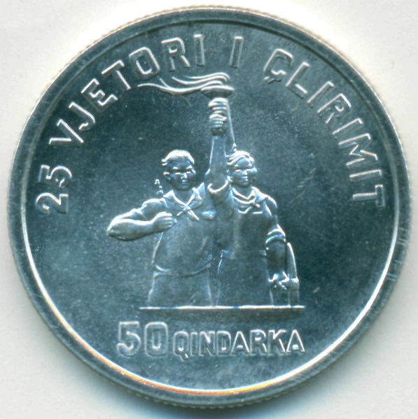 Памятная монета, приуроченная к 25-й годовщине освобождения Албании от фашизма.