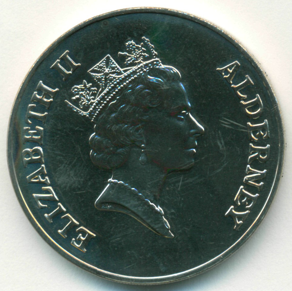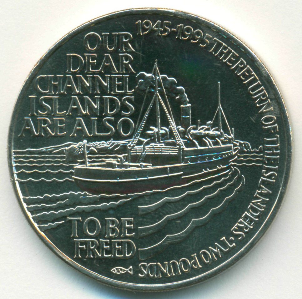 Юбилейная монета, посвященная 50-ой годовщине освобождения Нормандских островов от фашизма.