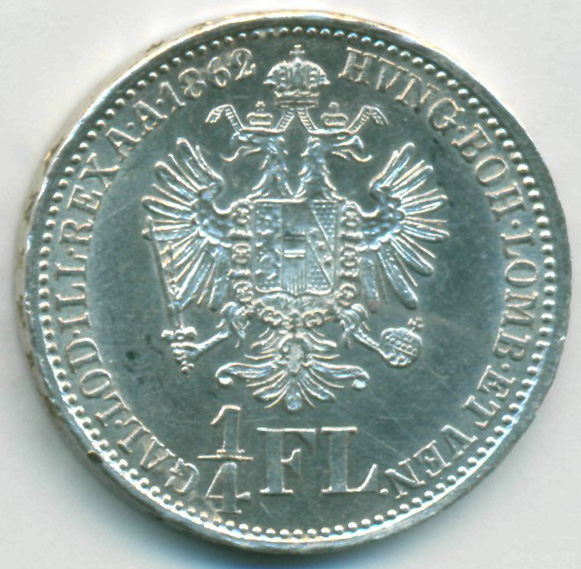 Австрия, 1/4 флоринa 1862 год A (UNC)