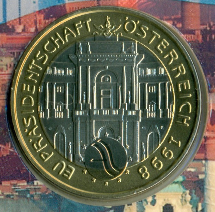 Памятная монета, посвященная председательству Австрии в Евросоюзе, с 01 июля по 31 декабря 1998 года.