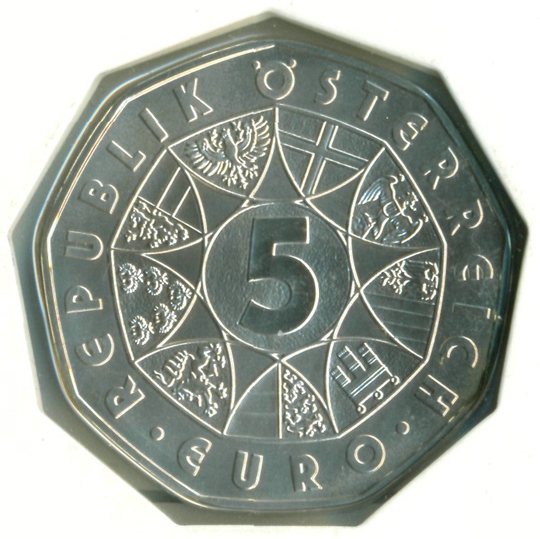 Первая монета в выпуске нового поколения австрийских монет номиналом 5 евро.