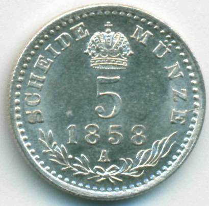 Aвстрия, 5 крейцеров 1858 год А (UNC)