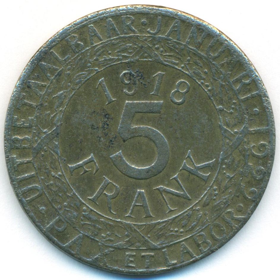 Бельгия, Гент, 5 франков 1918 год ТОКЕН