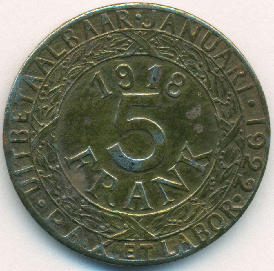 Бельгия, Гент, 5 франков 1918 год ТОКЕН