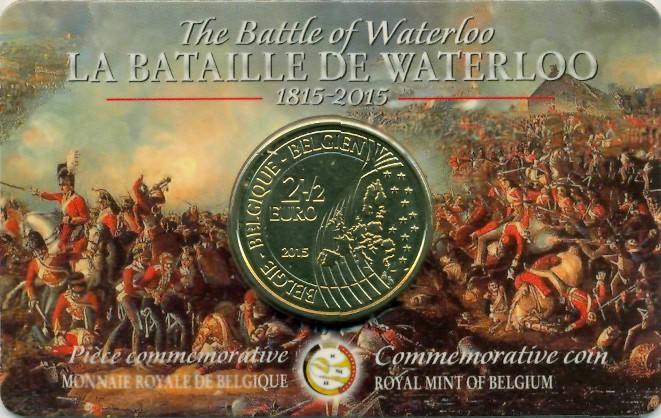 Памятная монета, посвященная 200-летию Битве при Ватерлоо - последнее крупное сражение французского императора Наполеона I, 18 июня 1815 год.