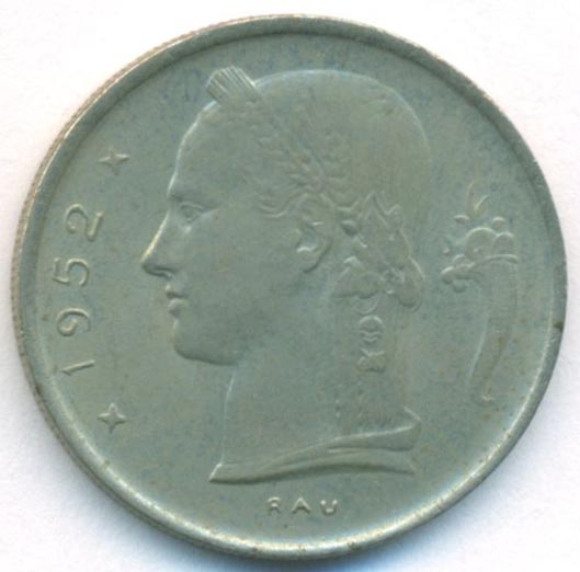 Бельгия, 1 франк 1952 год (UNC)