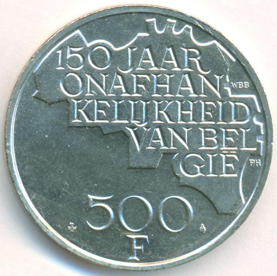 Памятная монета, посвященная 150-летию независимости Бельгии от Нидерландов.
