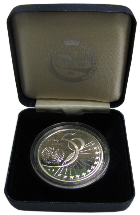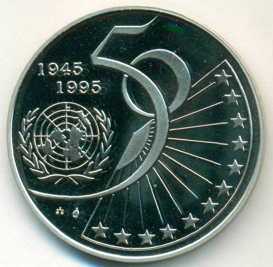 Юбилейная монета, посвященная 50-й годовщине образования Организации Объедененных Наций (ООН).