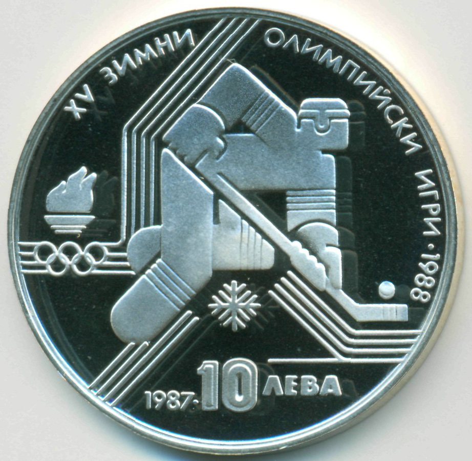 Памятная монета, приуроченная к проведению XV зимних Олимпийских Игр в Калгари (Канада), 1988 год. Хоккей.