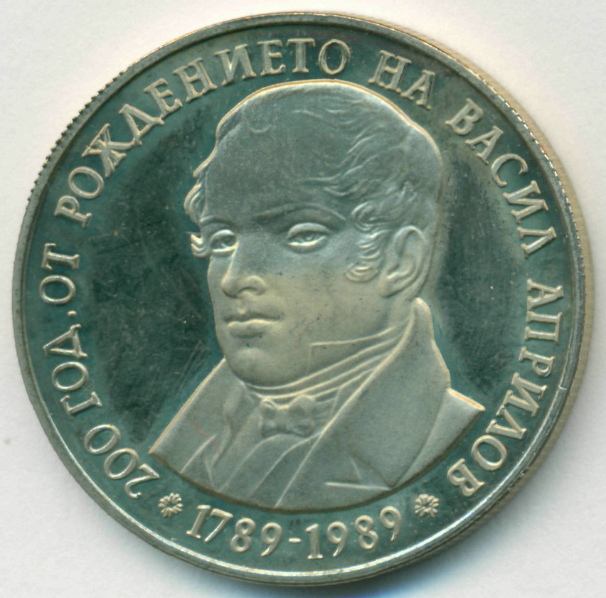 Памятная монета, посвященная 200-й годовщине со дня рождения Василия Евстафьевича Априлова (1789-1847) - болгарского просветителя, мецената, одного из главных деятелей болгарского национального возрождения.